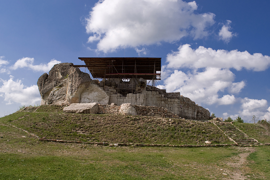 Върху доминираща скала, до която водят изсечени в скалата стъпала, е оформена уникална куполна гробница с два гроба, които са били покрити с плочи. Приема се, че гробницата е част от култов комплекс, в който е залегнала идеята за погребения, изложени за обществено поклонение. Запазени са някои от обслужващите сгради и съоръжения, както и част от крепостната стена. Предполага се, че в древността са извършвани и астрономически наблюдения.