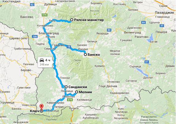 Рила – Благоевград - Банско – Сандански – Мелник – Петрич – Ключ