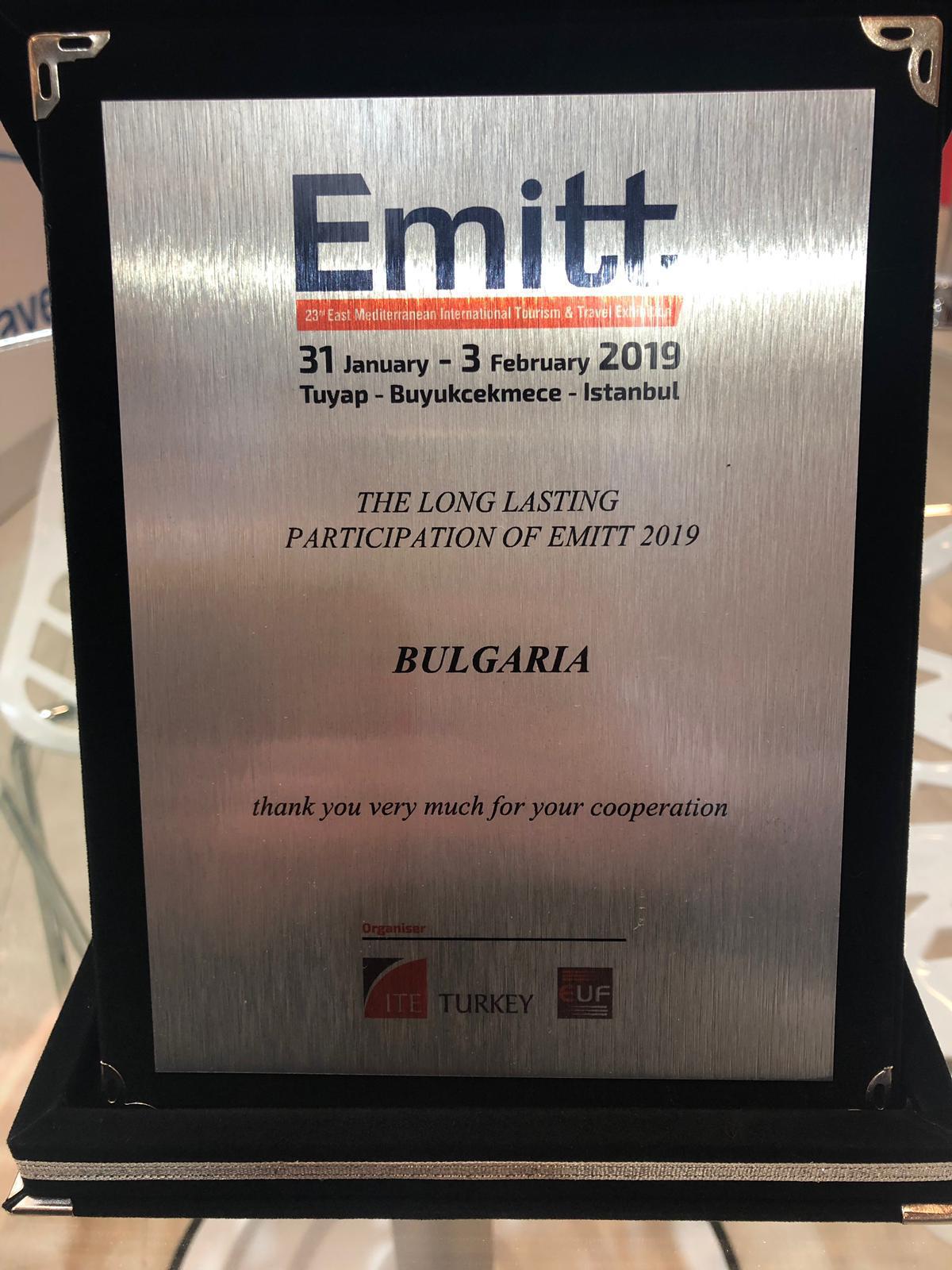 Министерството на туризма получи награда за България за дълготрайно успешно партньорство по време на 23-ото издание на изложението East Mediterranean International Tourism & Travel (EMITT), което се провежда ежегодно в Истанбул, Турция.