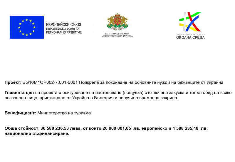 Министерството на туризма стартира изпълнението на Проект BG16M1OP002-7.001-0001 „Подкрепа за покриване на основните нужди на бежанците от Украйна“.