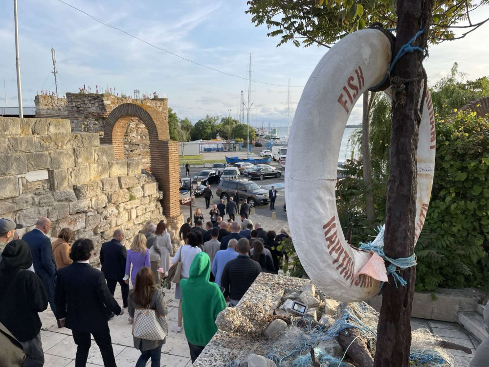 След кратка обиколка по калдъръмените улички на знакови забележителности гостите присъстваха на концерт на местни фолклорни състави на площад Месамбрия в Старинен град Несебър.