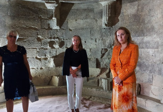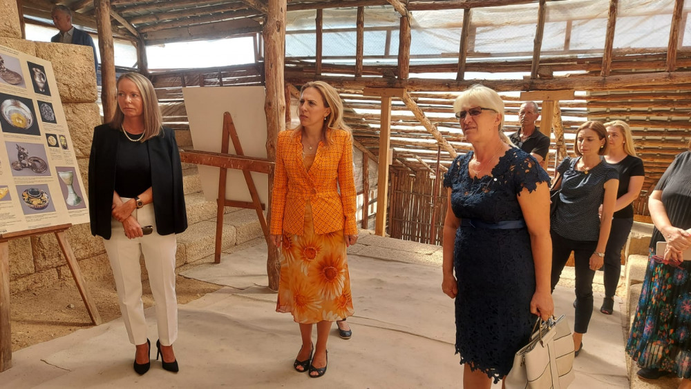 Първият обект, който министър Николова разгледа, бе Тракийски култов храм от края на V –IV век пр. н. е., който се намира в Четиньова могила. Това е най-големият тракийски храм на Балканите. Подмогилното съоръжение се състои от парадно стълбище с девет стъпала, две странични стълбища, ритуална площадка между тях, широк коридор и грандиозен храм с представителна фасада и две помещения. Целият свещен насип е ограден от висока крепида с дължина 241 м от отлично обработени гранитни блокове, свързани помежду си с железни скоби, залети с олово.