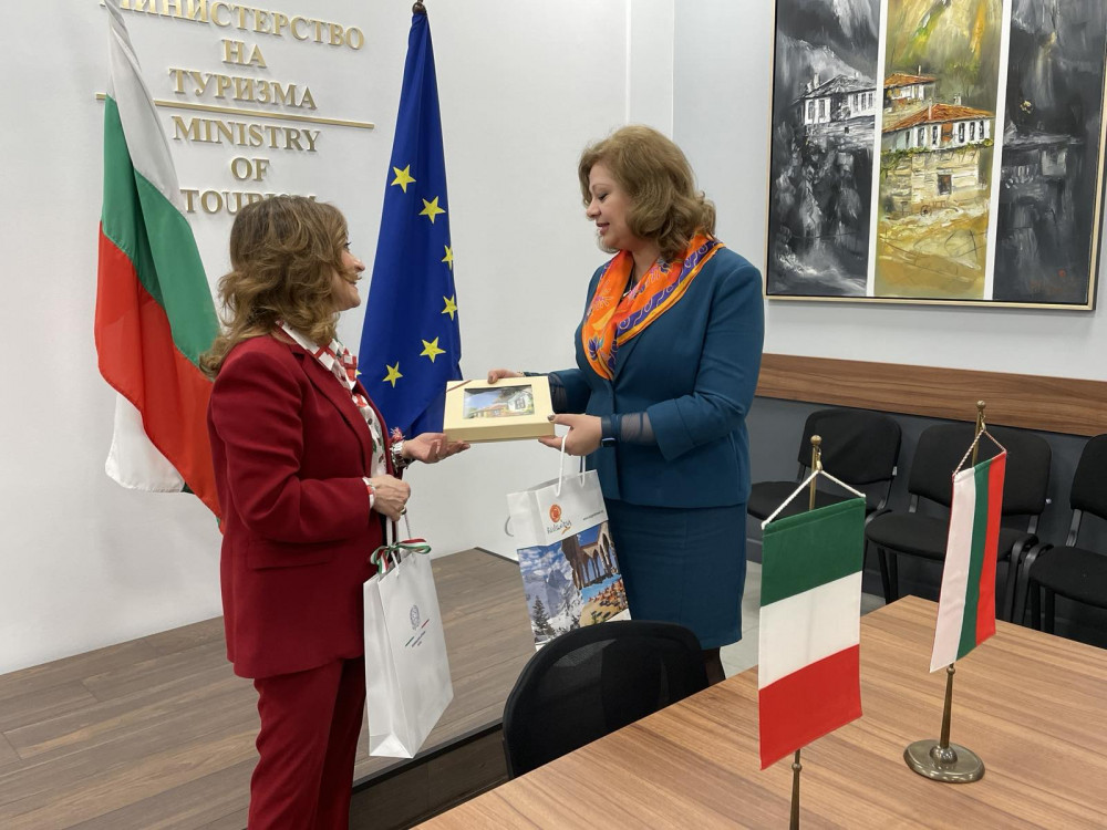 Professor Modeva congratulated Ambassador Zarra and said that ‘Italy is Bulgaria's primary partner in the field of tourism. Italy is also one of the most popular and loved destinations among Bulgarians, with 326,406 Bulgarians having visited it in 2019, according to WTO statistics. According to NSI data, 156,564 Italians visited Bulgaria in 2019 and 115,486 Italian tourists visited us in 2022.’ The Deputy Minister pointed out that according to the data of the border checkpoing, we have seen an increase of 107% in the number of Italian tourists visiting Bulgaria in 2022 compared to 2021.