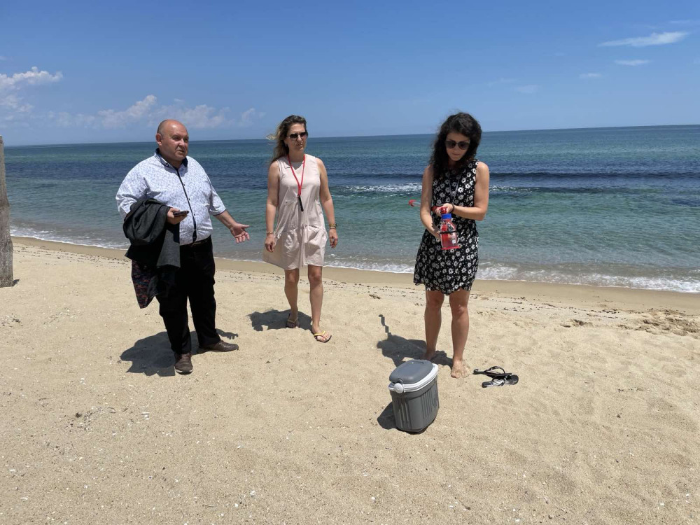 ‘We are strictly monitoring the condition of the coastal sea waters and so far we have not found any deviations from the quality standards’, Environment and Water Minister Petar Dimitrov was adamant after the joint inspection. He explained that Shkorpilovtsi beach was chosen as a sampling site for a reason. ‘There are both bathing and coastal marine areas here. Our colleagues from the Regional Health Inspectorate take samples from the bathing area, and we take samples from the coastal sea water area’, said Minister Dimitrov and stressed that the structures of the Ministry of Environment and Water constantly monitor not only the water quality indicators, but also illegal discharges into the sea and if such are detected, measures are taken immediately.